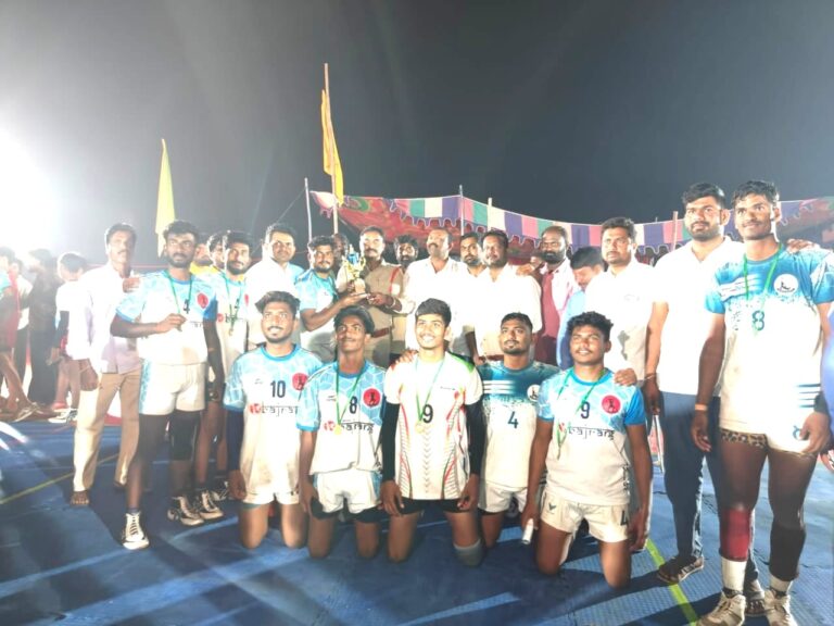 దండేపల్లి, ఆంధ్రప్రభ : చత్రపతి శివాజీ మహారాజ్ జయంతిని పురస్కరించుకుని దండేపల్లి మండలంలోని చింతపల్లిలో యూత్ ఆధ్వర్యంలో నిర్వహించిన ఉమ్మడి ఆదిలాబాద్ జిల్లా స్థాయి కబడ్డీ టోర్నమెంటు శుక్రవారం ముగిసాయి.మొదటి బహుమతి బజరంగ్ మహేష్ టీం రూ. 20వేలు రెండవ బహుమతి లింగాల రాజన్న చింతపల్లి టీం రూ.10వేలు మూడవ బహుమతి మహావీర్ టీం రూ. 5వేలు బహుమతులు గెలుపొందిన టీములకు దండేపల్లి ఎస్ఐ తహిసినోద్దీన్ చేతుల మీదుగా ప్రైజ్ మనీతో పాటు షీల్డ్ మెమొంటోలుఅందించినట్లు వారు తెలిపారు. ఈ కార్యక్రమంలో మాజీ ఎంపీపీ గడ్డం శ్రీనివాస్, నాయకులు గొర్ల మధుకర్, గడ్డం మధుకర్, మల్యాల శ్రీనివాస్, చుంచు చందు, పేరం జనార్ధన్, ఆకుల రమేష్,అక్కల రాజన్న, గోపు రవి, గొర్ల శేఖర్, దయ్యాల వెంకటేష్, అక్కల తిరుపతి తదితరులు పాల్గొన్నారు.
