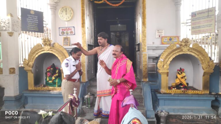 Karimabad | కరీమాబాద్, ఆంధ్రప్రభ : నగరంలోని 34వ డివిజన్ శివనగర్ శ్రీ శివ భక్త మార్కండేయ దేవాలయం కాలని వరంగల్ ట్రాఫిక్ సీఐ సుజాత ఈ రోజు సందర్శించారు. ఈనెల 30న కాలనీలోకి భారీ వాహనాలు కల్వర్టు, మోరీలు ధ్వంసం అనే కథనాన్ని ఆంధ్రప్రభ ప్రచురించింది. స్పందించిన ట్రాఫిక్ సిఐ సుజాత కాలనీ సందర్శించి ఆ ప్రాంతంలోని కాలనీలను పరిశీలించారు. సీఐ సందర్శన సందర్భంగా కూల్ డ్రింక్స్ వాటర్ గోదాములు మూసి ఉండడం జరిగింది. ఈ సందర్భంగా సీఐ మాట్లాడుతూ.. కాలనీలోకి భారీ వాహనాలు రాకుండా చర్యలు తీసుకుంటామని డివిజన్ ప్రజలకు తెలిపారు. సమీపంలోని దేవాలయం, స్థానికులు, పూజారుల ఆహ్వానం మేరకు దేవాలయంలో ట్రాఫిక్ సీఐ పూజలు నిర్వహించి పూజారుల ఆశీర్వాదం స్వీకరించారు.