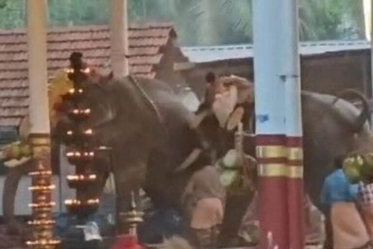 కోజికోడ్ , కేరళ: కోజికోడ్లోని కోయిలాండిలో జరిగిన ఆలయ ఉత్సవాల్లో అపశృతి చోటుచేసుకుంది.మణికులంగర ఆలయంలో ఉత్సవం జరగుతుండగా భక్తులు బాణాసంచా పేల్చారు. ఉత్సవాల కోసం ఆలయానికి రెండు ఏనుగులను తెచ్చారు. అయితే గురువారం రాత్రి ఉత్సవాలు జరుగుతున్న సమయంలో టెంపుల్ ఆవరణలో క్రాకర్స్ పేల్చడంతో పీతాంబరన్ , గోకుల్ అనే రెండు ఏనుగులు భయంతో పరుగులుపెట్టాయి.
