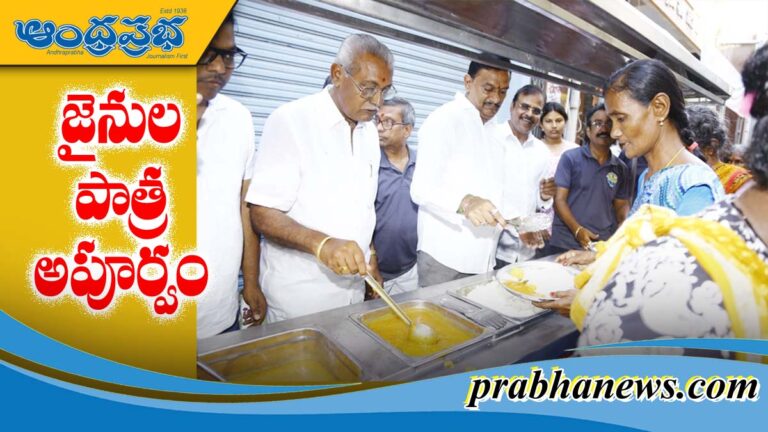 ఆంధ్రప్రభ, భవానీపురం (విజయవాడ) : విజయవాడ (Vijayawada) నగర అభివృద్ధిలో జైనులు (Jains) ఎంతో కీలక పాత్ర పోషిస్తున్నారని విజయవాడ పార్లమెంటు సభ్యుడు కేశినేని శివనాథ్ (Parliament Keshineni Shivnath) పేర్కొన్నారు. విజయవాడలోని పశ్చిమ నియోజకవర్గంలోని వన్ టౌన్ ప్రాంతం (తమినవారి వీధి) జైన్ టెంపుల్ వీధిలో ఆదివారం ఘనంగా శ్రీ సంభవ నాథ్ జైన్ శ్వేతాంబర్ మూర్తి పూజక్ సంఘం ఆధ్వర్యంలో మెగా అన్నదానం కార్యక్రమం నిర్వహించారు. 25 ఏళ్ల చరిత్ర కలిగిన ఈ రవివార్ వారాంత అన్నదాన మహోత్సవానికి విజయవాడ ఎంపీ కేశినేని శివనాథ్ ముఖ్య అతిథిగా హాజరై, కార్యక్రమాన్ని ప్రారంభించి ఎంపీ స్వయంగా భక్తులకు ఆహారం వడ్డించారు.