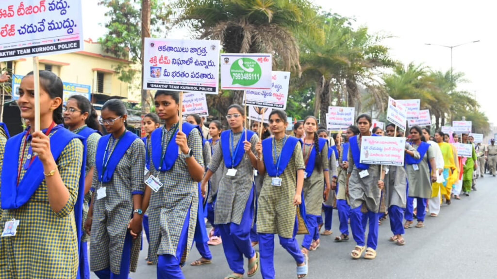 అవగాహన ర్యాలీ కర్నూలు కొండారెడ్డి బురుజు వద్ద ప్రారంభమై కోల్స్ కళాశాల మీదుగా పాత కంట్రోల్ రూమ్ వరకు చేరి, అక్కడి నుంచి జిల్లా పోలీసు కార్యాలయం వరకు కొనసాగింది. “ఆకతాయిల ఆట కట్టిస్తాం – తిరుగుబోతుల తాట తీస్తాం”, “ఒంటరిగా ప్రయాణిస్తున్నారా? శక్తి యాప్ వినియోగించండి” అనే నినాదాలతో ఫ్లకార్డులు ప్రదర్శిస్తూ ర్యాలీ నిర్వహించారు. ఈ కార్యక్రమంలో ఎఆర్ అడిషనల్ ఎస్పీ కృష్ణమోహన్, మహిళా పోలీస్ స్టేషన్ సీఐలు రామయ్య నాయుడు, విజయలక్ష్మీ, పట్టణ సీఐలు పార్థసారథి, నాగరాజారావు, మన్సురుద్దీన్, ఆర్ ఐలు నారాయణ, జావేద్, ఆర్ ఎస్సైలు, శక్తి టీం మహిళా పోలీసులు, సచివాలయ పోలీసులు, శ్రీలక్ష్మీ, చైతన్య, కెవిఆర్ కళాశాల, సిరాక్ స్కూల్ విద్యార్థులు తదితరులు పాల్గొన్నారు.