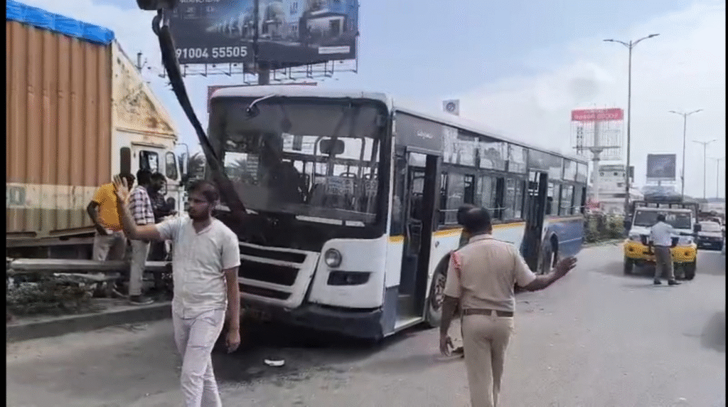 పటాన్చెరువు మండలం ముత్తంగి వద్ద 65వ జాతీయ రహదారిపై ఓ ఆర్టీసీ బస్సు రోడ్డు డివైడర్ ఎక్కడంతో ప్రయాణికులు ఆందోళనకు గురయ్యారు. ఆ సమయంలో బస్సులో 20 మంది వరకు ప్రయాణికులు ఉన్నట్టు తెలిసింది. మేడ్చల్ డిపోకు చెందిన ఆర్టీసీ బస్సు మేడ్చల్ నుంచి ఇస్నాపూర్ వస్తుండగా ముత్తంగి వద్ద డివైడర్ పైకి దూసుకెళ్లింది. సమాచారం అందుకున్న పటాన్చెరు