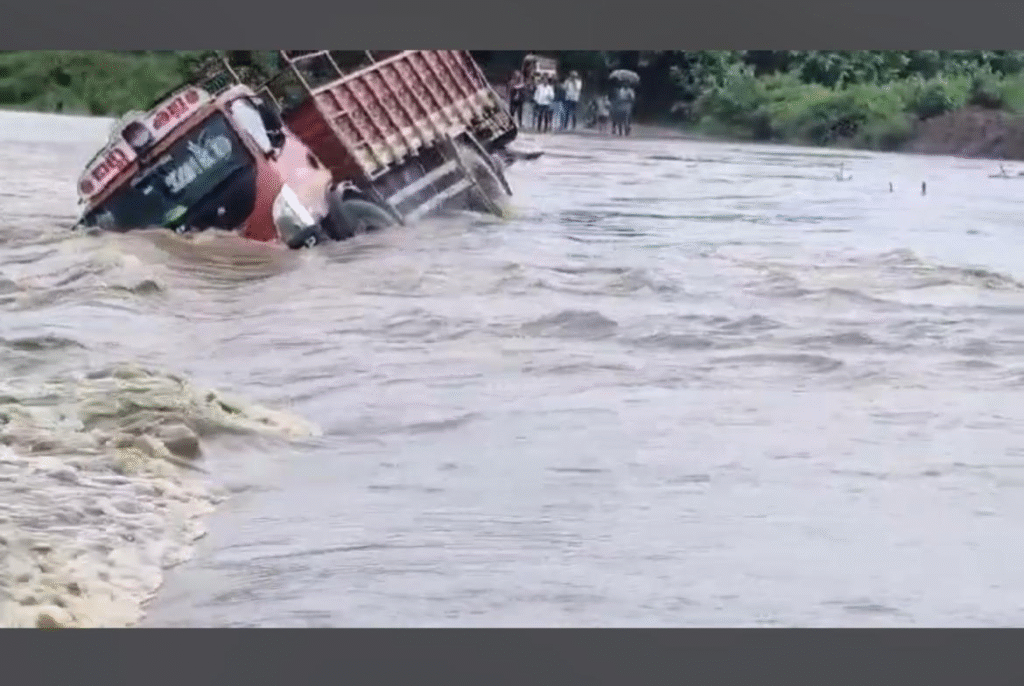 వాగులో కొట్టుకుపోయిన లారీ