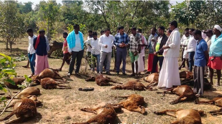 Rs. 6 lakh | బెల్లంపల్లి, ఆంధ్రప్రభ : మంచిర్యాల జిల్లా బెల్లంపల్లి నియోజకవర్గంలోని కన్నెపల్లి మండలం నాయకంపేట గ్రామపంచాయతీ పరిధిలోని కురుమగూడెంలో అంతుచిక్కని వ్యాధితో 50 గొర్రెలు(50 sheep) అకస్మాత్తుగా మృతి చెందిన ఘటన రైతాంగంలో తీవ్ర ఆందోళనకు గురిచేసింది. ఈ సంఘటనలో సుమారు రూ.6 లక్షల నష్టం(loss of Rs. 6 lakh) జరిగినట్టు రైతు తెలిపారు. చనిపోయిన గొర్రెలు స్థానిక రైతు పెద్దాల్ల వీరమల్లువిగా గుర్తించారు. బుధవారం నాడు వీరమల్లు తన గొర్రెల మందను మామూలుగా అడవికి మేతకు తీసుకెళ్లగా, రాత్రి అక్కడే ఉంటాయి. అయితే ఈ రోజు తెల్లవారగానీ చూసేసరికి 50 గొర్రెలు నోటి నుంచి నురుగులు కక్కుతూ కుప్పకూలి మృతి చెంది ఉన్నాయని ఆయన కన్నీరుమున్నీరుగా చెప్పారు. గొర్రెల మృతి మా గ్రామంలో ఎప్పుడూ జరగలేదనీ, నా బతుకు దెరువు ఇదేనని ఒక్కసారిగా అన్నీ పోయాయి” అంటూ రైతు ఆవేదన వ్యక్తం చేశారు.