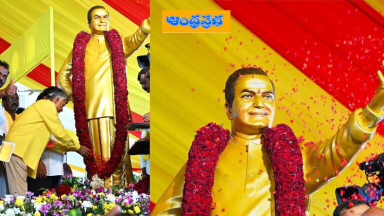 కడపలో జరుగుతున్న టీడీపీ మహానాడు లో రెండో రోజైన నేడు తెలుగుదేశం పార్టీ వ్యవస్థాపకుడు నందమూరి తారకరామారావు 102వ జయంతి సందర్భంగా సభా వేదికపై ఆయన విగ్రహానికి నివాళులర్పించారు. అనంతరం చంద్రబాబు మాట్లాడుతూ, ఎన్టీఆర్ జయంతి అంటే తెలుగు జాతికి పండగ రోజు.. ఒక వ్యక్తి రెండు రంగాల్లో రారాజుగా రాణించడం చరిత్రలో చూడలేదన్నారు సీఎం చంద్రబాబు.. . తెలుగు సినీ చరిత్రలో ఎవరెస్టుగా ఎన్టీఆర్ ఎదిగారు. నీతి, నిజాయతీ, పట్టుదల ఆయన ఆయుధాలుగా అభివర్ణించారు.. 33 ఏళ్లు వెండితెరకు.. 13 ఏళ్లు రాజకీయాల్లో అద్వితీయ చరిత్ర సృష్టించారని ప్రశంసలు కురిపించారు.. ఎన్టీఆర్ అంటే పేదవాడికి భరోసా.. రైతులకు నేస్తం. అధికారం అంటే బాధ్యత.. పదవి అంటే సేవ అని నిరూపించారని గుర్తుచేశారు.. అన్ని వర్గాలు కీర్తించే ఏకైక నాయకుడు ఎన్టీఆర్.. పాలకులు అంటే సేవకులని చెప్పి దేశ రాజకీయాల అర్థాన్నే మార్చిన వ్యక్తి ఆయన అని కొనియాడారు చంద్రబాబు..