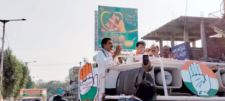 మంథని: మంథని మున్సిపల్ పరిధిలో మూడవ వార్డు అభ్యర్థిగా పోటీ చేస్తున్న శ్రీపతి బానయ్య ప్రజల కోసం పనిచేసే వ్యక్తి అని ఆయనను గెలిపించండి సమన్యాయ పరిపాలన అందజేస్తామని తెలంగాణ ఐటి, పరిశ్రమల, శాసనసభ వ్యవహారాల శాఖ మంత్రి దుద్దిళ్ల శ్రీధర్ బాబు పేర్కొన్నారు. మంత్రి శ్రీధర్ బాబు కాంగ్రెస్ శ్రేణులతో కలిసి విస్తృతంగా ప్రచారం చేశారు. మంత్రి శ్రీధర్ బాబు ప్రచారానికి అడుగడుగున జనాలు బ్రహ్మరథం పట్టారు. అంబేద్కర్ చౌరస్తాలో ఏర్పాటు చేసిన సమావేశంలో మంత్రి శ్రీధర్ బాబు వరాల జల్లులు కురిపించారు. కాంగ్రెస్ అభ్యర్థులను గెలిపించండి, అభివృద్ధి మరింత చేసి చూపిస్తానని ఆయన తెలిపారు. మూడవ వార్డ్ ప్రజలు ఆశీర్వదించి హస్తం గుర్తుకు ఓటేయాలని, ఈ సందర్భంగా ఆయన పిలుపునిచ్చారు. ఈ సందర్భంగా అభ్యర్థి బానయ్య మాట్లాడుతూ… గెలిచిన తర్వాత పాలకుల వలె కాకుండా సేవకుల వలె పరిపాలన అందజేస్తామని ఆయన పేర్కొన్నారు. ప్రజలందరికీ సమన్యాయం అందించడానికి కృషి చేస్తామని ఆయన తెలిపారు. అర్హులైన ప్రతి ఒక్కరికి ప్రభుత్వ సంక్షేమ పథకాలు అందిస్తామని ఆయన వివరించారు. ప్రతి ఒక్కరూ ఆశీర్వదించి హస్తం గుర్తుకు ఓటెయ్యాలని కోరారు.