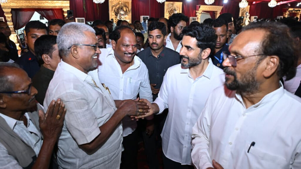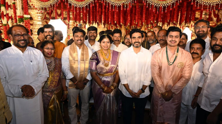 భోగాపురం, ఆంధ్రప్రభ : అనకాపల్లి ఎమ్మెల్యే, సీనియర్ నాయకుడు కొణతాల రామకృష్ణ కుమార్తె వివాహ వేడుకకు మంత్రి నారా లోకేష్ హాజరయ్యారు. విజయనగరం జిల్లా భోగాపురంలో జరిగిన ఈ వేడుకలో లోకేష్ నూతన వధూవరులు లక్ష్మీ రమ్య–అనంత్ బాబులకు ఆశీర్వాదాలు అందించి, వారి దాంపత్య జీవితం సుఖసంతోషాలతో నిండాలని ఆకాంక్షించారు. ఈ సందర్భంగా వధూవరులకు పుష్పగుచ్ఛం అందజేసి శుభాకాంక్షలు తెలిపారు.