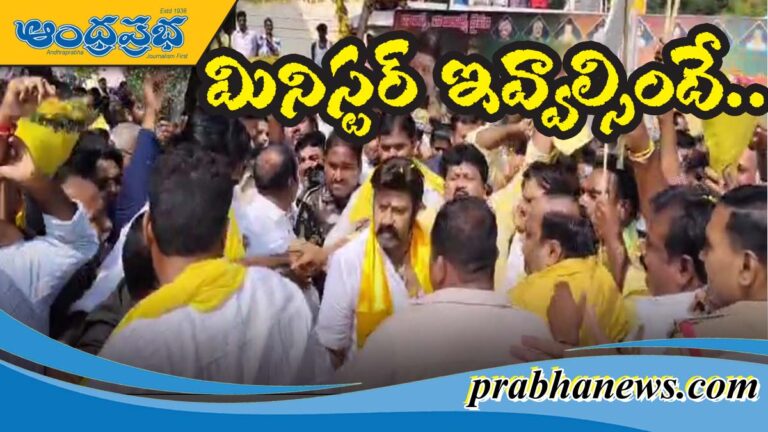 ( హిందూపురం , ఆంధ్రప్రభ) : సత్యసాయి జిల్లా హిందూపురం ఎమ్మెల్యే బాలయ్య (Hindupur MLA Balayya) కు మంత్రి పదవి ఇవ్వాలని ఆలిండియా ఫ్యాన్స్ కన్వీనర్ నంబూరీ తీష్ ఆధ్వర్యంలో పెద్ద ఎత్తున హిందూపురంలో బాలయ్య కాన్వాయ్ కు అడ్డంగా ప్లే కార్డుల చేత పట్టుకొని బాలయ్యకు మంత్రి పదవి ఇవ్వాలంటూ నిరసన వ్యక్తం చేశారు. ఈ సందర్భంగా వాహనం నుంచి కిందకు దిగిన బాలయ్య కు అభిమానులు తప్పకుండా మీరు మంత్రి పదవి తీసుకోవాలని పట్టు పట్టారు.