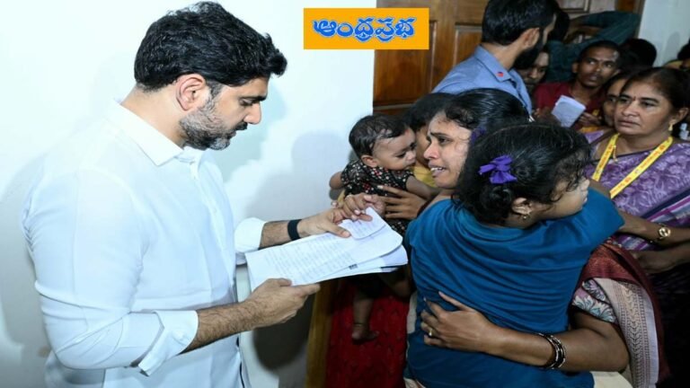 విశాఖ పార్టీ కార్యాలయంలో నిర్వహించిన ప్రజాదర్బార్ జోరువానలోనూ కొనసాగింది. మంత్రి నారా లోకేష్ ను స్వయంగా కలిసి పలు సమస్యలపై వినతులు (Requests) ఇచ్చేందుకు ఉదయం విశాఖ పార్టీ కార్యాలయానికి ప్రజలు పెద్దసంఖ్యలో చేరుకున్నారు. జోరువానలోనూ ప్రజాదర్బార్ ను కొనసాగించిన మంత్రి.. ప్రజల నుంచి వినతులు స్వీకరించారు. చివరి వ్యక్తి వరకు కలిసి అందరితో ఫోటోలు దిగారు.