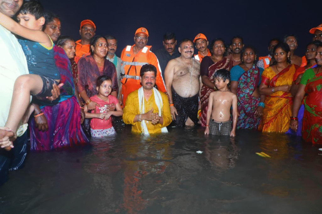 కార్తీక పౌర్ణమి సందర్భంగా మంగినపూడి బీచ్ (Manginapudi Beach) వద్ద సాగర సుప్రభాత హారతితో సముద్ర స్నానాలను రాష్ట్ర మంత్రి కొల్లు రవీంద్ర ప్రారంభించారు. ప్రమ-వేదపండితులు విష్ణుభొట్ల సూర్యనారాయణ శర్మ ఘనాపాటి ఆధ్వర్యంలో సముద్రునికి ప్రత్యేక పూజలు చేశారు. పూజా కార్యక్రమాల అనంతరం భక్తులతో కలసి పవిత్ర సముద్ర సాన్నం ఆచరించారు. ఈ సందర్భంగా ఆయన మాట్లాడుతూ.. భక్తులకు ఎలాంటి అసౌకర్యం కలుగకుండా ఏర్పాటు చేశామని, దేశంలోనే ప్రఖ్యాతి గాంచిన బీచ్ టూరిస్ట్ ప్లేస్ మంగినపూడి బీచ్ ను అభివృద్ధి చేస్తాని తెలిపారు.