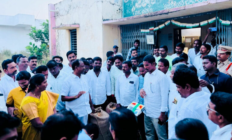 మొక్కజొన్న కొనుగోలు కేంద్రం ప్రారంభంలో ఎమ్మెల్యే జి.ఎస్.ఆర్,