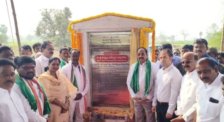 MLA | ఆంధ్రప్రభ ప్రతినిధి, భూపాలపల్లి : జయశంకర్ భూపాలపల్లి జిల్లా మొగుళ్ళపల్లి మండలం ఇసిపేట గ్రామంలో రూ.13 కోట్లతో 10వేల టన్నుల రాష్ట్ర గిడ్డంగుల సంస్థ ధాన్యం నిల్వల గోదాముల నిర్మాణానికి శనివారం రాష్ట్ర వ్యవసాయ శాఖ మంత్రి తుమ్మల నాగేశ్వరరావు, వేర్ హౌస్ చైర్మెన్ రాయల్ నాగేశ్వర్ రావు, వరంగల్ ఎంపీ కడియం కావ్య, భూపాలపల్లి ఎమ్మెల్యే గండ్ర సత్యనారాయణ రావు, ,జిల్లా కలెక్టర్ రాహుల్ శర్మలతో కలిసి శంకుస్థాపన చేశారు. అనంతరం వెలుగు మండల సమాఖ్య 72 మహిళా సంఘాలకు బ్యాంకు లింకేజీ ద్వారా రూ. 3 కోట్ల 68 లక్షల రుణాల చెక్కులను అందజేశారు. ఈ కార్యక్రమంలో కాంగ్రెస్ జిల్లా అధ్యక్షులు బట్టు కర్ణాకర్ , అధికారులు, సిబ్బంది ప్రజలు పాల్గొన్నారు.