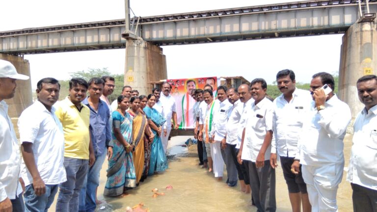 ఆలేరు, ఆంధ్రప్రభ : యాదాద్రి భువనగిరి జిల్లా ఆలేరు పెద్దవాగులోకి రైతుల కోసం నీళ్లు విడుదల చేయించినందుకు కాంగ్రెస్ నాయకుల ఆధ్వర్యంలో ప్రభుత్వ విప్,ఎమ్మెల్యే బీర్ల ఐలయ్య చిత్రపటానికి శనివారం పాలాభిషేకం జరిగింది. గంగమ్మకు పసుపు కుంకుమలతో పూజలను కూడా నిర్వహించారు.