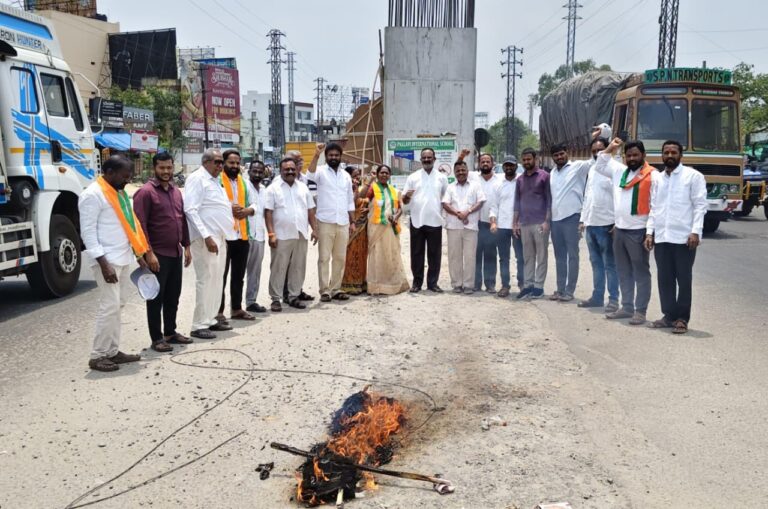 మేడ్చల్, ఆంధ్రప్రభ : కాంగ్రెస్ పార్టీ జాతీయ అధ్యక్షుడు మల్లికార్జున ఖర్గే భారత ప్రధాని నరేంద్ర మోదీని ఉద్దేశించి చేసిన అనుచిత వ్యాఖ్యలపై బీజేపీ శ్రేణులు ఆగ్రహం వ్యక్తం చేశారు. ఖర్గే వ్యాఖ్యలను తీవ్రంగా ఖండిస్తూ, బుధవారం సైబరాబాద్ మున్సిపల్ కార్పొరేషన్ మేడ్చల్ సర్కిల్ పరిధిలోనీ మేడ్చల్ పట్టణంలో అంబేద్కర్ విగ్రహం వద్ద బీజేపీ నాయకులు నిరసన చేపట్టారు. మేడ్చల్ సర్కిల్ అధ్యక్షురాలు జెల్లీ శైలజ హరినాథ్ ఆధ్వర్యంలో జరిగిన ఈ కార్యక్రమంలో నాయకులు మల్లికార్జున ఖర్గే దిష్టిబొమ్మను దహనం చేశారు.