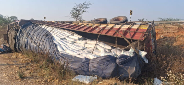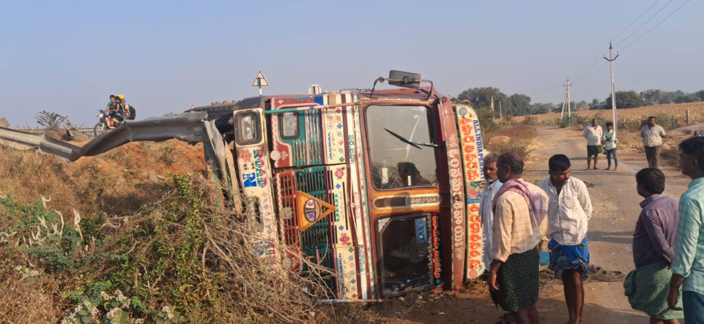 నందవరం, ఆంధ్రప్రభ : మండలంలోని ముగతి గ్రామం దగ్గర 167జాతీయ రహదారి పై అదుపు తప్పిన లారీ బోల్తా పడింది. యాదగిరి నుండి చక్కర లోడ్ తో ప్రొద్దుటూరు కు వెళ్తుండగా రాత్రి సుమారు 1గంట సమయంలో ముందు వస్తున్నా కారు ను తప్పించే క్రమంలో లారీ బోల్తా పడినట్లు డ్రైవర్ తెలిపారు.