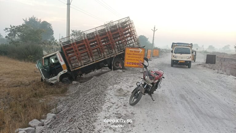 Nandigama, నిజాంపేట, ఆంధ్రప్రభ : మెదక్ జిల్లా నిజాంపేట (Nizampet) మండల పరిధిలోని నందిగామ గ్రామ శివారులో తాత్కాలిక వంతెన వద్ద అదుపుతప్పి కోళ్ల వ్యాన్ కల్వర్టులోకి దూసుకెళ్లింది. ఈ మేరకు వ్యాన్ డ్రైవర్ తెలిపిన వివరాల ప్రకారం.. సిద్దిపేట (Siddipet) నుండి రామాయం పేటకు వెళ్తున్న కోళ్ల వ్యాన్ రోడ్డు బాగుందని స్పీడ్ గా వెళ్తున్న క్రమంలో ఈ ప్రమాదం చోటు చేసుకుందన్నారు. ఈ ప్రమాదంలో ఎవరికి ఎలాంటి ప్రాణ నష్టం జరగలేదు.