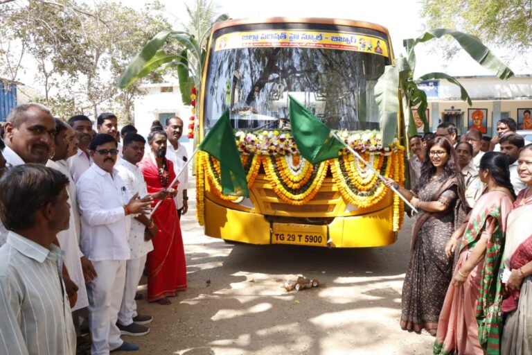 ఊట్కూర్, ఆంధ్రప్రభ ; గ్రామీణ ప్రాంతాల విద్యార్థులు పాఠశాలకు సురక్షితంగా సకాలంలో చేరుకునే రవాణా సౌకర్యం కల్పించేందుకు ఏర్పాటు చేసిన ఉచిత పాఠశాల బస్సు ఒక వరం అని జిల్లా కలెక్టర్ సిక్తా పట్నాయక్ అన్నారు. ప్రభుత్వ పాఠశాలల విద్యార్థుల కోసం ఉచిత బస్సు సౌకర్యం రంగారెడ్డి జిల్లాలో ఏర్పాటు చేయగా జిల్లాల పరంగా రాష్ట్రంలో మన నారాయణపేట జిల్లా రెండవ జిల్లాగా నిలవడం గర్వకారణమనిఅన్నారు. శనివారం నారాయణ పేట జిల్లా ఊట్కూర్ మండల పరిధిలోని బిజ్వార్ గ్రామంలోని జెడ్పీ ఉన్నత పాఠశాలకు అదే గ్రామానికి చెందిన అంబాత్రయ క్షేత్రం వ్యవస్థాపకులు శ్రీ శ్రీ ఆదిత్య పరాశ్రీ స్వామీజీ రూ.40 లక్షల వ్యయం గల పాఠశాల బస్సును ఉచితంగా అందజేశారు.
