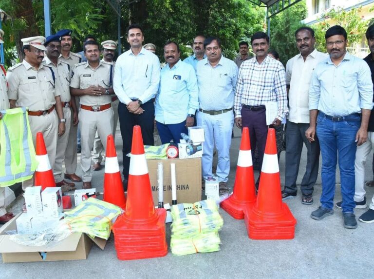 పోలీస్ శాఖకు రోడ్డు భద్రతా సామగ్రి పంపిణీ..