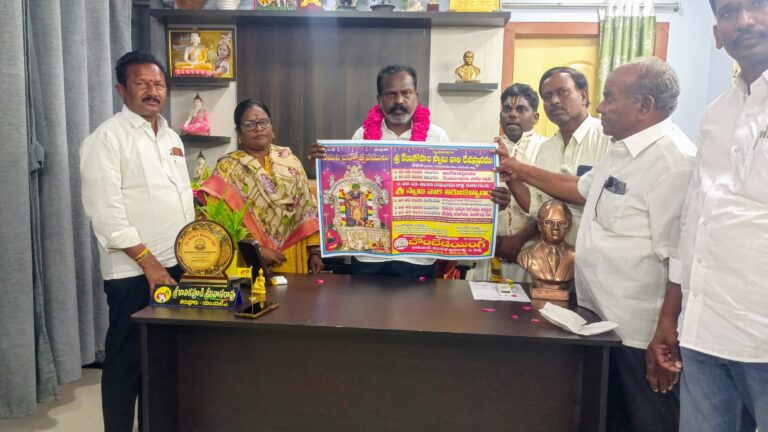 తిరువూరు, ఆంధ్రప్రభ ; గంపలగూడెం మండలం నెమలి గ్రామంలో నిర్వహించనున్న వేణుగోపాల స్వామి వార్షిక బ్రహ్మోత్సవాలకు తొలి ఆహ్వాన పత్రికను ఎమ్మెల్యే కొలికపూడి శ్రీనివాసరావుకు అందజేశారు. ఈ బ్రహ్మోత్సవాలు ఫిబ్రవరి 28 నుంచి మార్చి 5 వరకు వైభవంగా నిర్వహించనున్నట్లు దేవస్థానం అధికారులు తెలిపారు. దేవస్థానం కార్యనిర్వాహణాధికారి నేల సంధ్య ఆధ్వర్యంలో ఎమ్మెల్యేను కలిసి ఆహ్వాన పత్రికను అందజేసి కార్యక్రమానికి హాజరుకావాలని కోరారు. ఆలయ ప్రధాన అర్చకుడు టి. గోపాలచార్యులు ప్రత్యేక పూజలు నిర్వహించి బ్రహ్మోత్సవాల ప్రాముఖ్యతను వివరించారు. గ్రామ ప్రజల సహకారంతో బ్రహ్మోత్సవాలను ఘనంగా నిర్వహించేందుకు అన్ని ఏర్పాట్లు చేపడుతున్నట్లు అధికారులు తెలిపారు. ఈ కార్యక్రమంలో దేవస్థానం సిబ్బంది, గ్రామ పెద్దలు పాల్గొన్నారు.