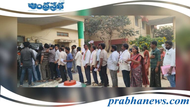 Nominations | నర్సింహులపేట, ఆంధ్రప్రభ: ఫోటోలో వరుసలో నిలుచున్న వారంతా.. ఓట్లు వేసేందుకు కాదు… ఎన్నికల్లో పోటీకి నామినేషన్లు వేసేందుకు వేచి చూస్తున్నారు. పంచాయతీల రెండవ విడత ఎన్నికల నామినేషన్లు(Nominations) చివరి రోజు కావడంతో ఈ రోజు మహబూబాబాద్ జిల్లా నర్సింహులపేట మండల కేంద్రంలో రాత్రి వరకు బారులు తీరారు.