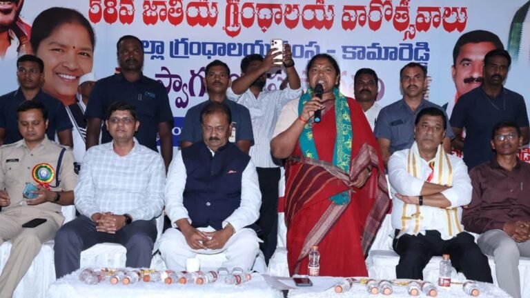 కామారెడ్డి ప్రతినిధి, (ఆంధ్రప్రభ) : తెలంగాణలో నిర్వహించిన 58వ గ్రంథాలయ వారోత్సవాల ముగింపు కార్యక్రమం ఘనంగా జరిగింది. ఈ కార్యక్రమానికి ముఖ్య అతిథులుగా రాష్ట్ర మంత్రి సీతక్క, ప్రభుత్వ సలహాదారు మహమ్మద్ అలీ షబ్బీర్, జహీరాబాద్ ఎంపీ సురేష్ కుమార్ షెట్ట్కార్ హాజరయ్యారు.