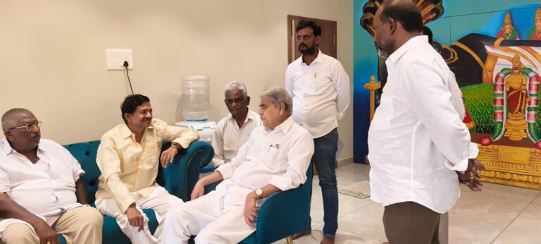 జగ్గయ్యపేట, ఆంధ్రప్రభ : ఇటీవల జరిగిన రోడ్డు ప్రమాదంలో గాయపడిన మాజీ మున్సిపల్ చైర్మన్, తెలుగుదేశం పార్టీ సీనియర్ నాయకుడు శ్రీరామ్ సుబ్బారావును కేడీసీసీ చైర్మన్, మాజీ మంత్రి నెట్టెం రఘురాం పరామర్శించారు. జగ్గయ్యపేటలోని వారి కార్యాలయంలో సుబ్బారావు గారిని కలిసి ఆరోగ్య పరిస్థితిని అడిగి తెలుసుకున్నారు.