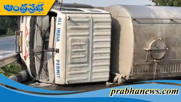 జాతీయ రహదారిపై ఆయిల్ ట్యాంకర్ బోల్తా.. ఎక్కడంటే !!