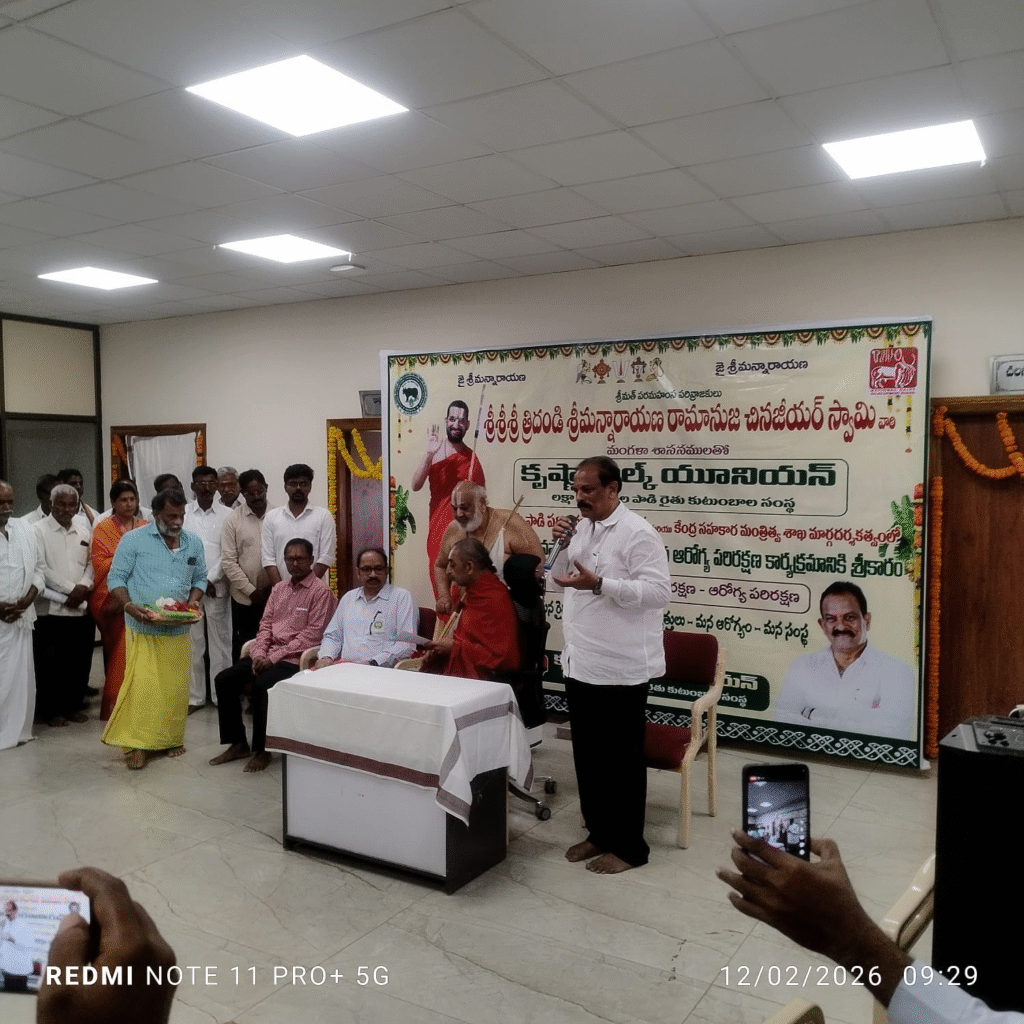 Organic | గన్నవరం – ఆంధ్రప్రభ : చినజీయర్ స్వామి ఆధ్వర్యంలో చేపట్టిన సుఫల రైతు యాత్ర గురువారం రెండవ రోజుకు చేరింది. వీరవల్లి కృష్ణ మిల్క్ యూనియన్ ఫ్యాక్టరీలు ప్రకృతి వ్యవసాయం చేస్తున్న రైతులతో చినజీయర్ ముఖాముఖి నిర్వహించారు. మన నేల… మన ఆరోగ్యం.. భూ పరిరక్షణ… ఆరోగ్య పరిరక్షణ లక్ష్యంగా సేంద్రీయ పద్ధతుల ద్వారా జన ఆరోగ్య పరిరక్షణ ఈ కార్యక్రమం జరుగుతుందని స్వామీజీ తెలిపారు.