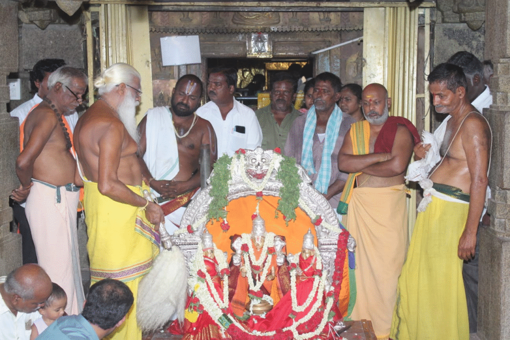 మాడవీధులలో స్వామివారిని ఊరేగించారు. స్వామివారి దర్శించుకోవడానికి పెద్ద ఎత్తున భక్తులు తరలిరావడంతో, దేవాలయ ప్రాంగణం భక్తులతో కిటకిటలాడింది. ఈ కార్యక్రమంలో ఈవో సాకే రమేష్ బాబు, అర్చకులు ద్వారకనాథ్ చార్యులు, బాలాజీ చార్యులు, గుండురావు, దేవాలయ సిబ్బంది పాల్గొన్నారు.