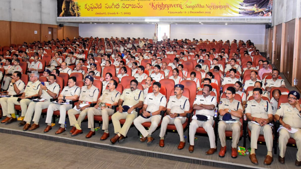 భవానీ దీక్షా విరమణను పురస్కరించుకుని రాష్ట్రంలోని వివిధ జిల్లాల నుంచి బందోబస్తు విధులు నిర్వహించేందుకు వచ్చిన పోలీస్ అధికారులకు ఈ రోజు గవర్నర్పేట పోలీస్ స్టేషన్ (Police Stayion) పరిధిలోని తుమ్మలపల్లి కళాక్షేత్రంలో ఏర్పాటు చేసిన సమావేశంలో భవానీ భక్తుల భద్రతకు తీసుకోవాల్సిన జాగ్రత్తలు, శాఖాపరంగా పాటించవలసిన నియమ నిబంధనల గురించి, గిరిప్రదక్షణ రూట్ను, హోల్డింగ్ ఏరియాలు, స్నానఘాట్లు, పార్కింగ్ ప్రదేశాలు మొదలైన ప్రదేశాలను డ్రోన్ కెమెరా వీడియోల రూపంలో వివరించి సూచనలు, సలహాలను అందజేశారు. ఈ సందర్భంగా నగర పోలీస్ కమిషనర్ ఎస్.వి.రాజశేఖర బాబు బందోబస్తుకు విచ్చేసిన అధికారులకు దిశానిర్దేశం చేశారు.