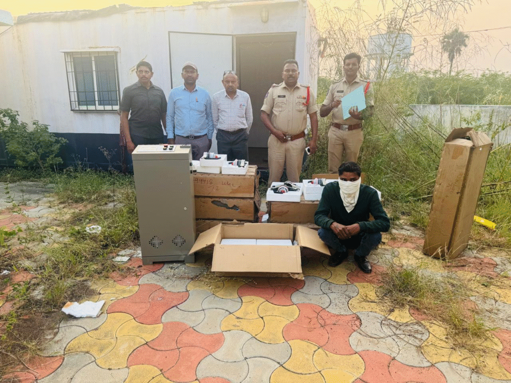 కంపెనీలో ఉన్న పానల్ బోర్డ్స్(Panel Boards), ఫిల్టర్స్, డ్రాప్ పిన్ బాక్స్ వంటి ముఖ్య పరికరాలు దొంగలించాడు. వాటిని అప్పుడే అమ్మితే ఎవరికైనా అనుమానం రావడంతో పాటు తన చోరీ బాగోతం బయట పడుతుందని భావించి చోరీ చేసిన పరికరాలను అక్కడే ఉన్న కంపెనీకి సంబంధించిన కంటైనర్ లో వేసి తాళం వేసి వెళ్ళాడు.