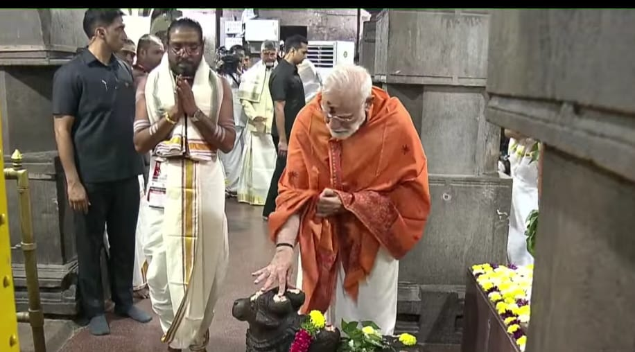 ఈ సందర్భంగా ప్రధానమంత్రికి శ్రీ స్వామి, అమ్మవార్ల చిత్రపటాలు, శేష వస్త్రాలను రాష్ట్ర ముఖ్యమంత్రి నారా చంద్రబాబునాయుడు (Chandrababu Naidu), ఉప ముఖ్యమంత్రి పవన్ కళ్యాణ్ (Pawan Kalyan) బహూకరించారు. అంతకుముందు కర్నూలు ఎయిర్పోర్టు నుంచి ప్రధానమంత్రితో పాటు ఆంధ్రప్రదేశ్ రాష్ట్ర ముఖ్యమంత్రి నారా చంద్రబాబు నాయుడు ఉప ముఖ్యమంత్రి పవన్ కళ్యాణ్ కూడా హెలికాప్టర్ ద్వారా సున్నిపెంట హెలిప్యాడ్కు చేరుకున్నారు.