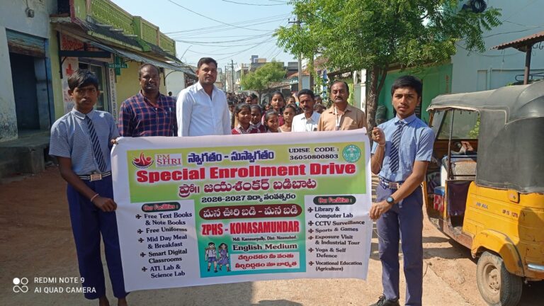 ఈ సందర్భంగా వారు మాట్లాడుతూ ప్రభుత్వ పాఠశాలల్లో మంచి ప్రతిభ కలిగిన, అనుభవజ్ఞులైన ఉపాధ్యాయులు ఉంటారన్నారు. ప్రభుత్వ పాఠశాలలో చదువుకునే విద్యార్థులకు ఉచిత పాఠ్య పుస్తకాలు,మధ్యాహ్న భోజనం, యూనిఫాం ప్రభుత్వం అందిస్తోందని, తల్లిదండ్రులు తమ పిల్లలను ప్రభుత్వ పాఠశాలల్లో చేర్పించాలని కోరారు. పిడి రమేష్,జ్ఞానేశ్వర్, లక్ష్మీ నరసయ్య, మనోహర్, ఉపాధ్యాయులు విద్యార్థులు తదితరులు పాల్గొన్నారు.