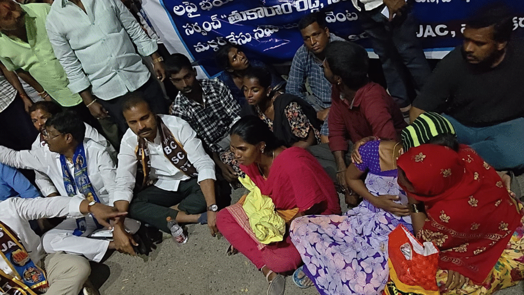 ఆసుపత్రి ముందు రాస్తారోకో, పోలీసులతో వాగ్వాదం