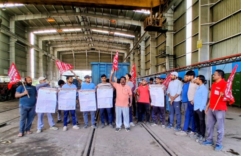protest | బెల్లంపల్లి, ఆంధ్రప్రభ : రైల్వే కార్మికుల సమస్యలు కేంద్ర ప్రభుత్వం పరిష్కరించాలని సౌత్ సెంట్రల్ రైల్వే మజ్దూర్ యూనియన్ నాయకులు డిమాండ్ చేశారు. సౌత్ సెంట్రల్ రైల్వే మజ్దూర్ సికింద్రాబాద్ డివిజన్ జనరల్ సెక్రెటరీ శంకర్ రావు, డివిజనల్ సెక్రెటరీ రవీందర్ లు ఇచ్చిన పిలుపు మేరకు సోమవారం బెల్లంపల్లి రైల్వే స్టేషన్ లోని ఆర్ ఓ హెచ్ డిపో, ఇంజనీరింగ్ డిపార్ట్మెంట్, లోకో పైలట్ డిపార్ట్మెంట్ లలో కార్మికులు నిరసన తెలిపారు.