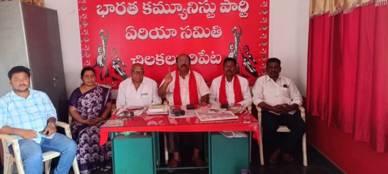 Public meeting | చిలకలూరిపేట, ఆంధ్రప్రభ : భారత కమ్యూనిస్టు పార్టీ (సీపీఐ) ఆవిర్భవించి వంద సంవత్సరాలు పూర్తి చేసుకున్న సందర్భంగా ఖమ్మం నగరంలో జనవరి 18న జరిగే బహిరంగ సభను విజయవంతం చేయాలని పల్నాడు జిల్లా సీపీఐ కార్యదర్శి ఎ మారుతీ వరప్రసాద్ కోరారు. ఇవాళ పట్టణంలోని సీపీఐ కార్యాలయంలో పార్టీ నాయకులతో కలసి ఏర్పాటు చేసిన విలేకర్ల సమావేశంలో ఆయన మాట్లాడుతూ… భారతదేశ చరిత్రలో ఏ పార్టీకి లేని ఈ వందేళ్ళ చరిత్ర ఘనత భారత కమ్యూనిస్టు పార్టీకి మాత్రమే దక్కుతుందన్నారు.
