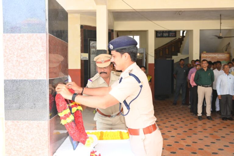 శ్రీకాకుళం, ఆంధ్రప్రభ : జిల్లా పోలీస్ కార్యాలయంలో శనివారం ప్రముఖ పండితుడు, సాహిత్యవేత్త పుట్టపర్తి నారాయణచార్యులు జయంతి వేడుకలను ఘనంగా నిర్వహించారు. ఈ కార్యక్రమంలో జిల్లా ఎస్పీ కె.వి. మహేశ్వర రెడ్డి పాల్గొని, నారాయణచార్యులు చిత్రపటానికి పూలమాలలు వేసి ఘన నివాళులు అర్పించారు. ఈ సందర్భంగా జిల్లా ఎస్పీ మాట్లాడుతూ, పుట్టపర్తి నారాయణచార్యులు తెలుగు సాహిత్యానికి అందించిన సేవలు, వారి విశిష్ట పాండిత్యం, సమాజానికి అందించిన మార్గదర్శకత్వం ఎంతో గొప్పదని తెలిపారు.