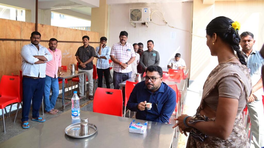 క్యాంటీన్ (Canteen) పరిసరాలను, భోజనం, కూరగాయల నాణ్యత ప్రమాణాలను కలెక్టర్ పరిశీలించారు. క్యాంటీన్ ఎలా నడుస్తుందని, ఎంత మంది వస్తున్నారని క్యాంటీన్ నిర్వాహకులు అర్చనను కలెక్టర్ అడిగి తెలుసుకున్నారు. క్యాంటీన్ అభివృద్ధికి ఇంకా ఏమైనా అవసరాలు ఉన్నాయా అని అడిగి తెలుసుకున్నారు. కలెక్టరేట్ లో జరిగే ప్రతి కార్యక్రమానికి మీ క్యాంటీన్ నుండే టీ, స్నాక్స్ సరఫరా చేస్తున్నారు కదా అని అడిగారు.