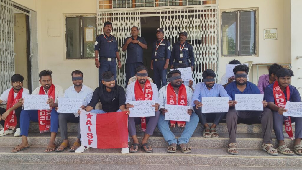 STUDENTS FIRE కళ్లకు గంతలతో నిరసన Andhra prabha news
