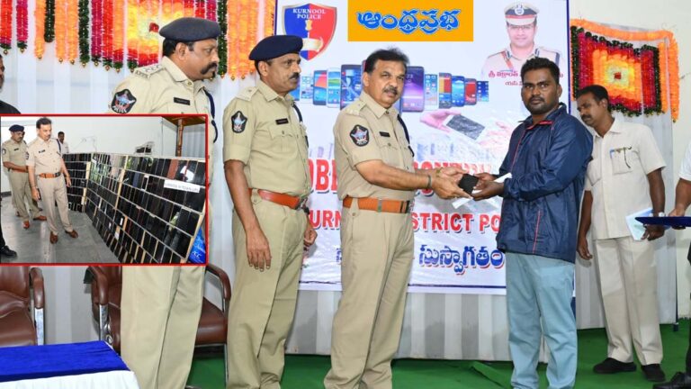 కర్నూలు బ్యూరో, జూన్ 12, ఆంధ్రప్రభ : కర్నూలు సైబర్ ల్యాబ్ పోలీసులు రికవరీ చేసిన 604 మొబైల్ ఫోన్లను గురువారం కర్నూలు జిల్లా అడిషనల్ ఎస్పీ అడ్మిన్ హుస్సేన్ పీరా బాధితులకు అందజేశారు. జిల్లా పోలీసు కార్యాలయంలోని మినీ కాన్ఫరెన్స్ హాల్లో మొబైల్ రికవరీ (Mobile Recovery) మేళా కార్యక్రమాన్ని ఏర్పాటు చేసి మొబైల్ ఫోన్లను బాధితులకు అందజేశారు. ఈ సంధర్బంగా అడిషనల్ ఎస్పీ హుస్సేన్ పీరా (Hussein Peera) మీడియాతో మాట్లాడారు. జిల్లా ఎస్పీ విక్రాంత్ పాటిల్ ఆదేశాల మేరకు కర్నూలు పోలీసులు రెండవ విడతలో 604 (విలువ రూ.1 కోటి 30 లక్షలు) మొబైల్ ఫోన్లను రికవరీ చేశారన్నారు. ప్రజలు మొబైల్స్ పొగోట్టుకోకుండా జాగ్రత్తగా ఉంచుకోవాలన్నారు. పోలీసులు సైబర్ నేరాలపై అవగాహన కార్యక్రమాలు నిర్వహిస్తున్నారన్నారు.