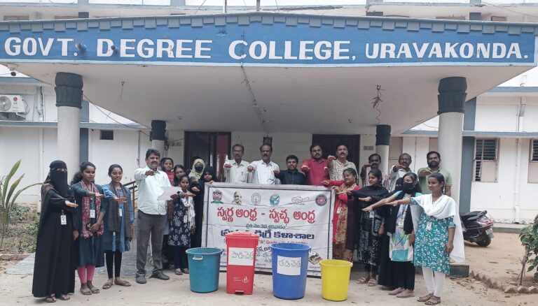 అనంతరం అధ్యాపకులు, విద్యార్థులతో స్వచ్ఛ ఆంధ్ర -స్వర్ణాంధ్ర ప్రతిజ్ఞ చేయించారు. ఈ కార్యక్రమంలో కళాశాల వైస్ ప్రిన్సిపల్ మస్తానప్ప, ఎన్.ఎస్.ఎస్ ప్రోగ్రామ్ ఆఫీసర్ పరమేష్, ఫిజిక్స్ అధ్యాపకులు డాక్టర్. రాజేష్ ,అర్థశాస్త్ర ఉపన్యాసకులు డాక్టర్ అయ్యన్న, హిందీ అధ్యాప కులు డాక్టర్ కృష్ణవేణి, ఆంజనేయులు, డాక్టర్ రమేష్ బాబు, నీలి వెంకటేశులు, నాగేంద్ర, ప్రశాంత్ తదితరులు పాల్గొన్నారు.