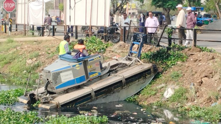 కాలువలలో గుర్రపు డెక్క ఆకు తొలగింపు