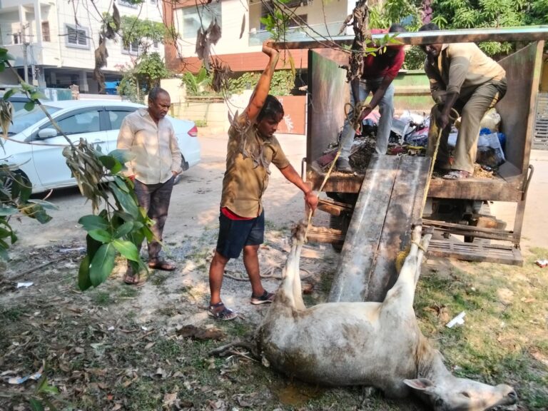 మృతి చెందిన ఆవుదూడ తరలింపు…