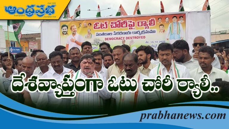 ఈ సందర్భంగా పట్టణంలోని అనభేరి చౌరస్తా(Anabheri Crossroads) నుండి అంబేద్కర్ చౌరస్తా వరకు భారీ ర్యాలీ నిర్వహించారు. అనంతరం మంత్రి పొన్నం ప్రభాకర్ మాట్లాడుతూ.. ఓటు చోరీ తోనే ఉత్తర భారత దేశంలో బీజేపీ(BJP) ప్రభుత్వం పాగా వేయగలుగుతుందని దక్షిణ భారతదేశంలో సైతం ఈ పాలసీని అమలు చేయాలని చూస్తుందని అన్నారు. ఓటు ప్రాముఖ్యతపై, ఓట్ చోరీపై ప్రజలకు తెలియజేయడానికే ఓట్ ర్యాలీ, సంతకాల సేకరణ నిర్వహించినట్లు తెలిపారు.
