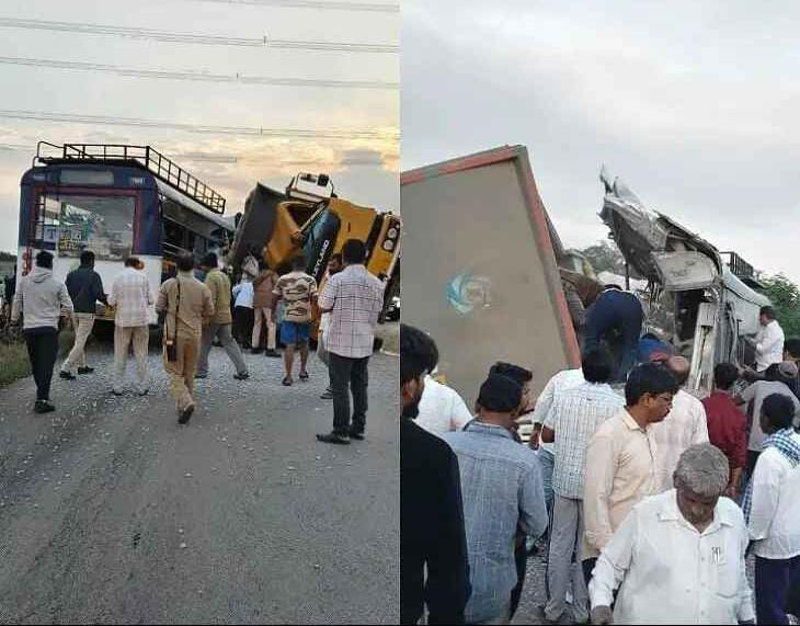 చేవెళ్ల దగ్గర రోడ్డు ప్రమాదం November 3, 2025 Madhav చేవెళ్ల దగ్గర రోడ్డు ప్రమాదంరంగారెడ్డి: చేవెళ్ల దగ్గర రోడ్డు ప్రమాదం.. ఆర్టీసీ బస్సు, టిప్పర్ ఢీ, 10 మందికి తీవ్ర గాయాలు.. క్షతగాత్రులను చేవెళ్ల ప్రభుత్వ ఆసుపత్రికి తరలింపు.. ప్రమాద సమయంలో బస్సులో 70 మంది ప్రయాణికులు.. చేవెళ్ల మండలం మీర్జాగూడ వద్ద ఘటన..