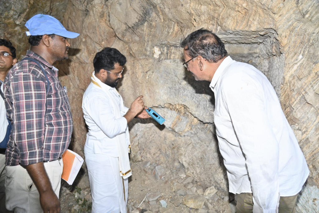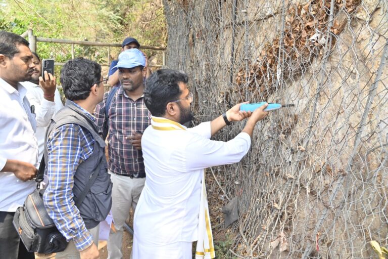 ఇంద్రకీలాద్రి, ఆంధ్రప్రభ : విజయవాడలోని ఇంద్రకీలాద్రి కొండ చరియల పటిష్టతపై అధ్యయనం చేస్తున్న బెంగళూరులోని నేషనల్ ఇన్స్టిట్యూట్ ఆఫ్ రాక్ మెకానిక్స్ శాస్త్రవేత్తల బృందం శనివారం క్షేత్రస్థాయిలో కీలక పరిశీలనలు జరిపింది. సైంటిస్ట్ శ్రీ ప్రసన్న జైన్ నేతృత్వంలోని బృందం, ఆలయ కార్యనిర్వహణాధికారి వీకే శీనా నాయక్ ఇంజినీరింగ్ అధికారులతో కలిసి ఇంద్రకీలాద్రిలోని వివిధ ప్రాంతాలను సందర్శించింది. ముందుగా ఓం టర్నింగ్ సమీపంలోని కొండ చరియలను, అలాగే ఘాట్ రోడ్ మొదటి మలుపు వద్ద ఉన్న ప్రమాదకర ప్రాంతాలను బృందం పరిశీలించింది.
