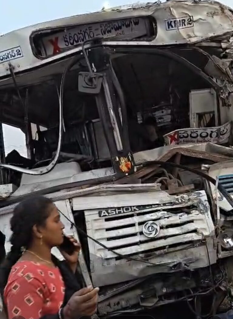 లారీని ఢీ కొట్టిన ఆర్టీసీ బస్సు