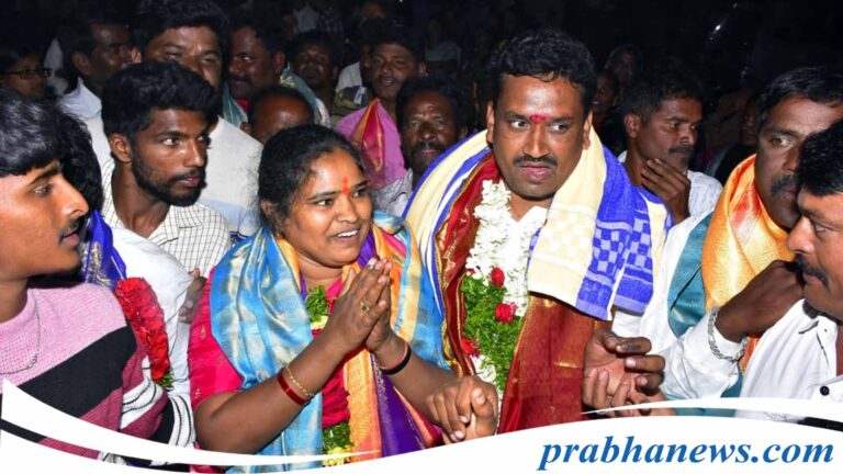 యాదాద్రి, ఆంధ్రప్రభ ప్రతినిధి: మండలంలోని తాజ్పూర్ గ్రామంలో సర్పంచ్గా ర్యాకల సంతోష శ్రీనివాస్ ఘన విజయం సాధించారు. ఎన్నికల ఫలితాలు ప్రకటించిన వెంటనే గ్రామ ప్రజలు భారీ విజయోత్సవాలు నిర్వహించారు. సర్పంచ్గా గెలవడంలో తనకు ఓటు వేసి గెలిపించిన ప్రజలకు ర్యాకల సంతోష శ్రీనివాస్ ప్రత్యేకంగా కృతజ్ఞతలు తెలిపారు.