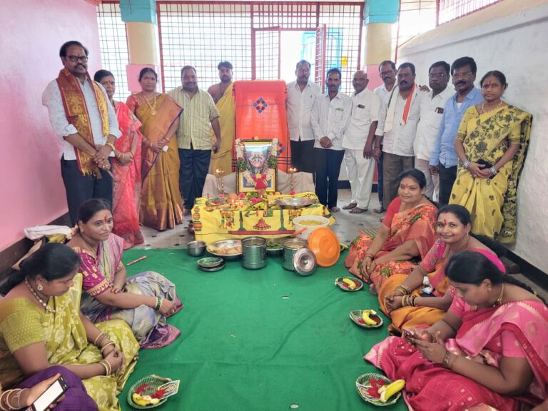 చిట్యాల, ఆంధ్రప్రభ : ఈరోజు ఆర్యవైశ్యుల ఇలవేల్పు కులదేవత శ్రీ వాసవి కన్యకా పరమేశ్వరి దేవి జయంతి సందర్భంగా,స్థానిక శివాలయంలో ఆర్యవైశ్య మహాసభ మహిళ అధ్యక్షురాలు బెలిదె నర్మద ఆధ్వర్యంలో మహిళలందరూ పాల్గొని ఘనంగా పూజలు, అమ్మవారికి కుంకుమ పూజ చేశారు. అలాగే పాల్గొన్న మహిళలకు లక్కీ డ్రా ద్వారా ఐదుగురికి చీరలు బహుమతిగా సుచరిత షాపింగ్ ద్వారా బహుమతిగా ఇచ్చారు. ఈరోజు ప్రోగ్రామ్ మొత్తం ఆర్యవైశ్య మహాసభ పట్టణ అధ్యక్షులు వాసా విద్యాసాగర్ గారి సహకారం తో నిర్వహించారు.