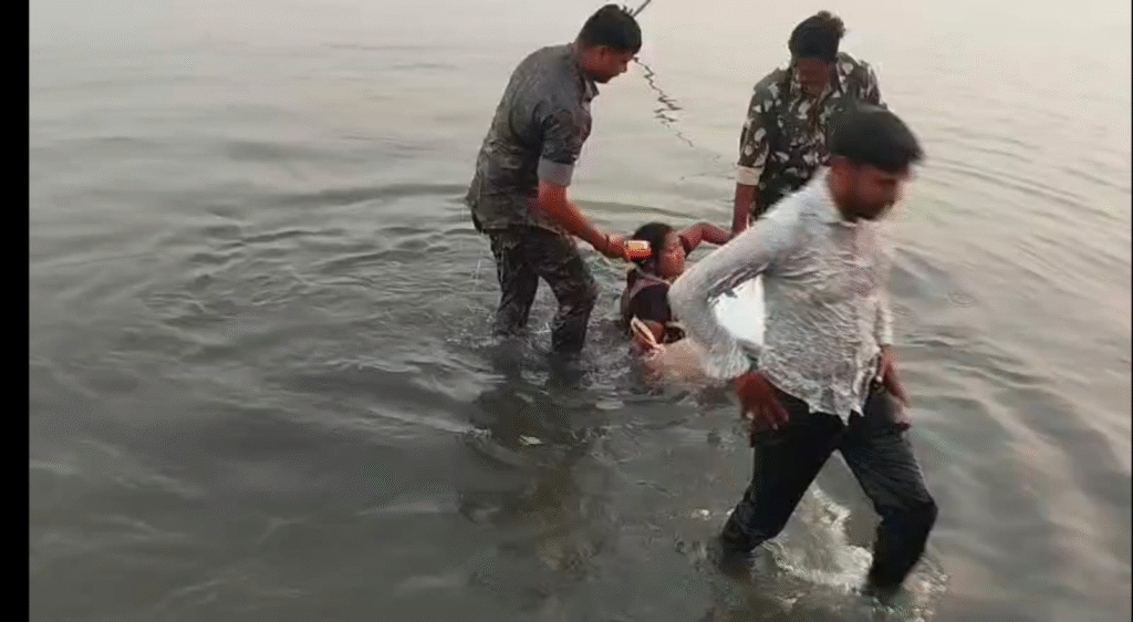 బాసర, ఆంధ్ర ప్రభః గోదావరి నదిలో స్నానం ఆచరిస్తూ ప్రమాదవశాత్తు నదిలో మునిగిపోతుండగా స్థానికులు కేకలు వేయడంతో అక్కడే ఉన్న తెలంగాణ స్పెషల్ ఫోర్స్ పోలీసులు వివాహిత మహిళను రక్షించిన ఘటన బాసర పుణ్యక్షేత్రంలోని గోదావరి నది వద్ద చోటుచేసుకుంది.